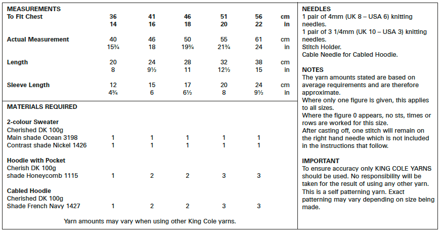 Cherish and Cherished DK Baby Hoodies and Sweater Knitting Pattern - 14in to 22in