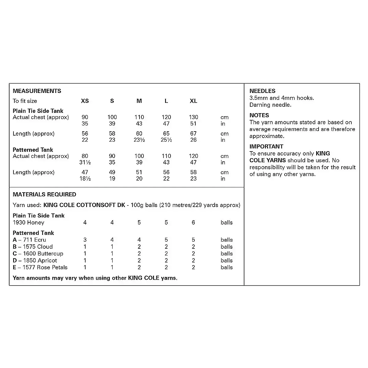 King Cole Cottonsoft DK 6399 Tank Tops Crochet Pattern