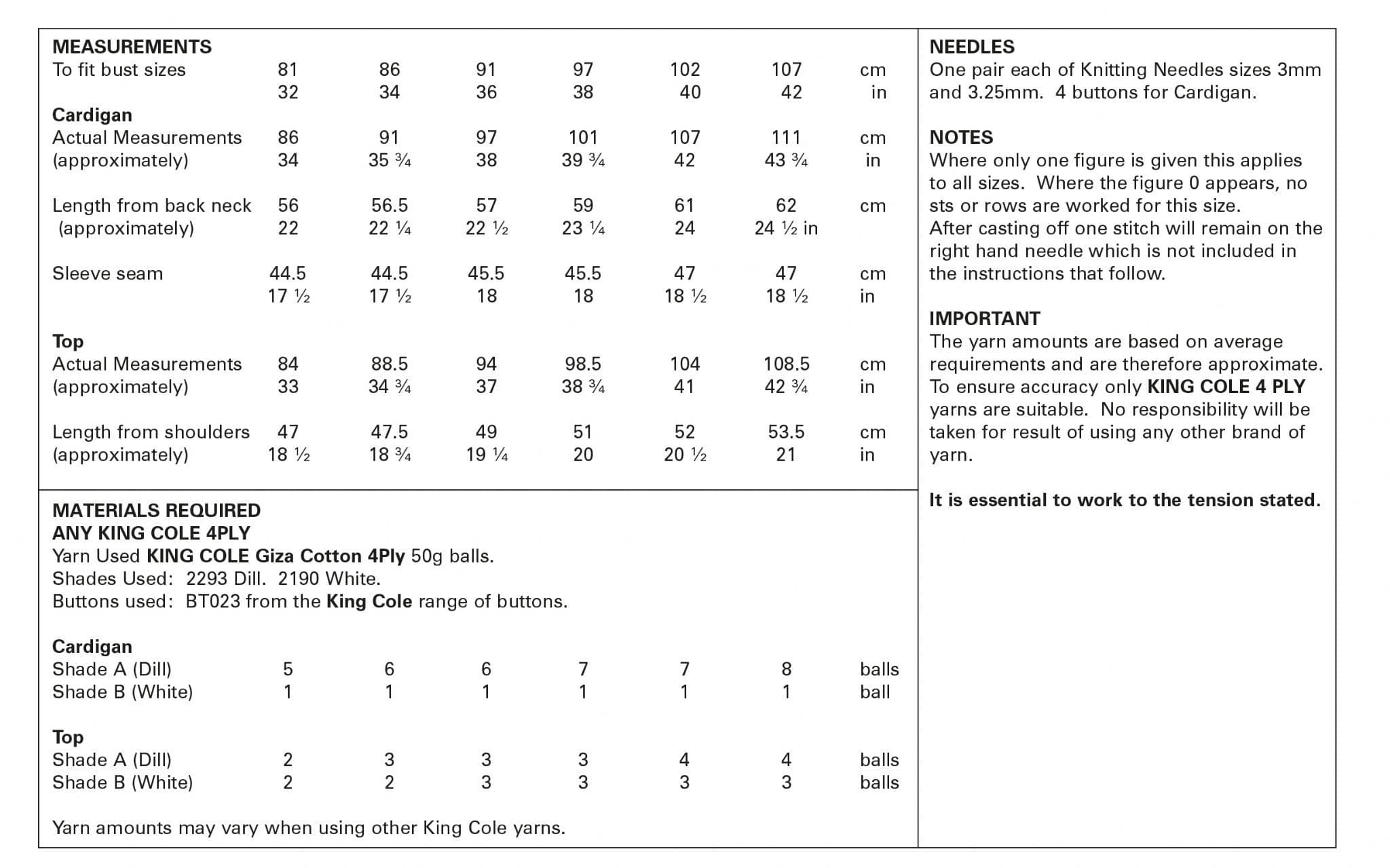 Lovely Summer Cotton Twinset in King Cole Giza 4ply - Size 32-42 in.