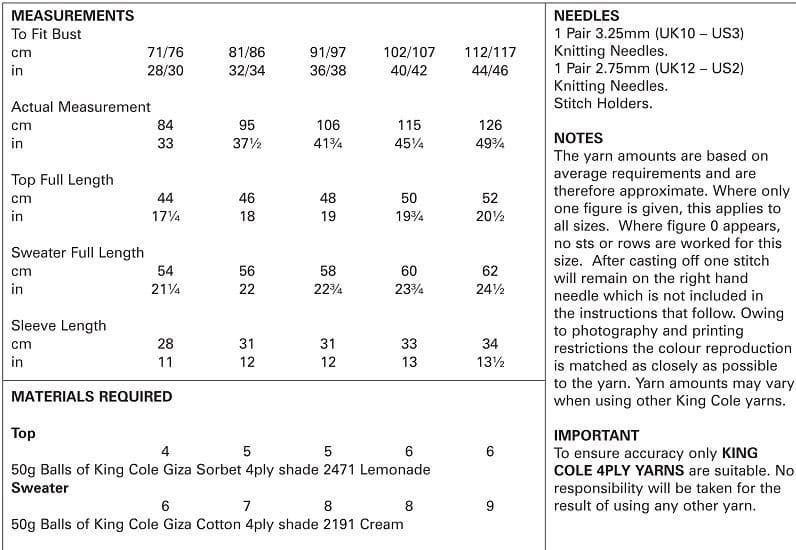King Cole Giza Sorbet 4ply Top Sweater Knitting Pattern 4787