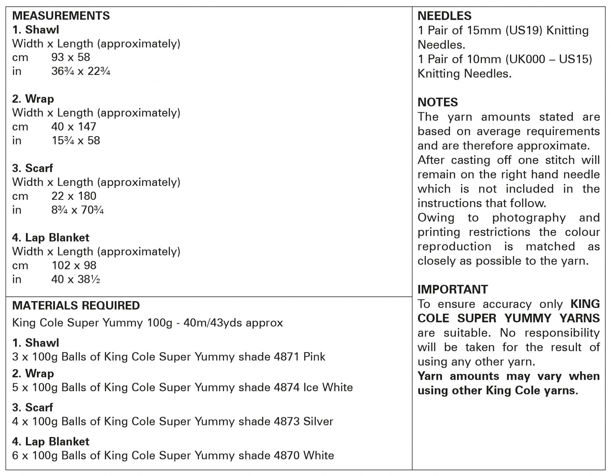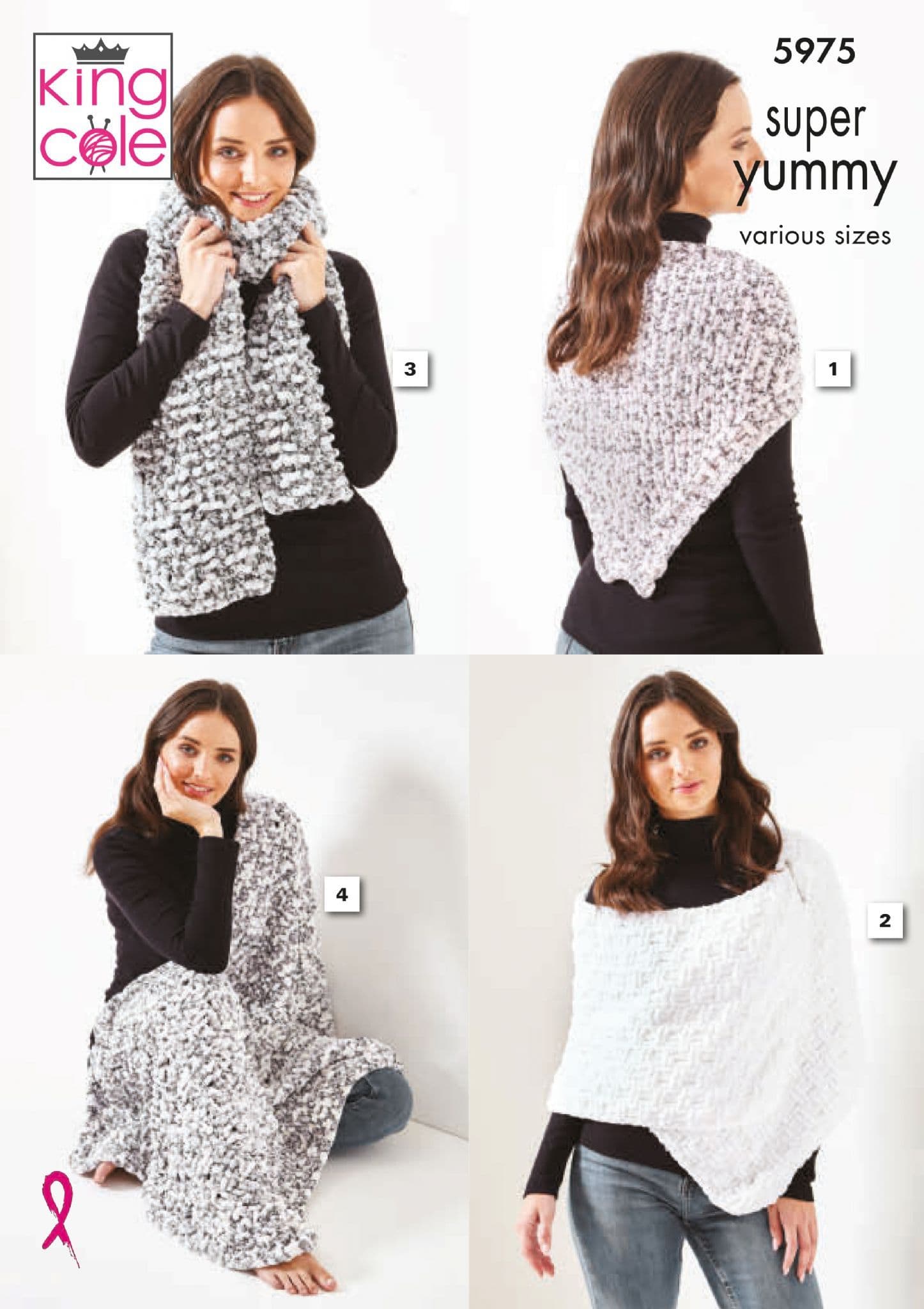 King Cole Super Yummy Knitting Pattern 5975 Shawl Wrap Scarf Blanket