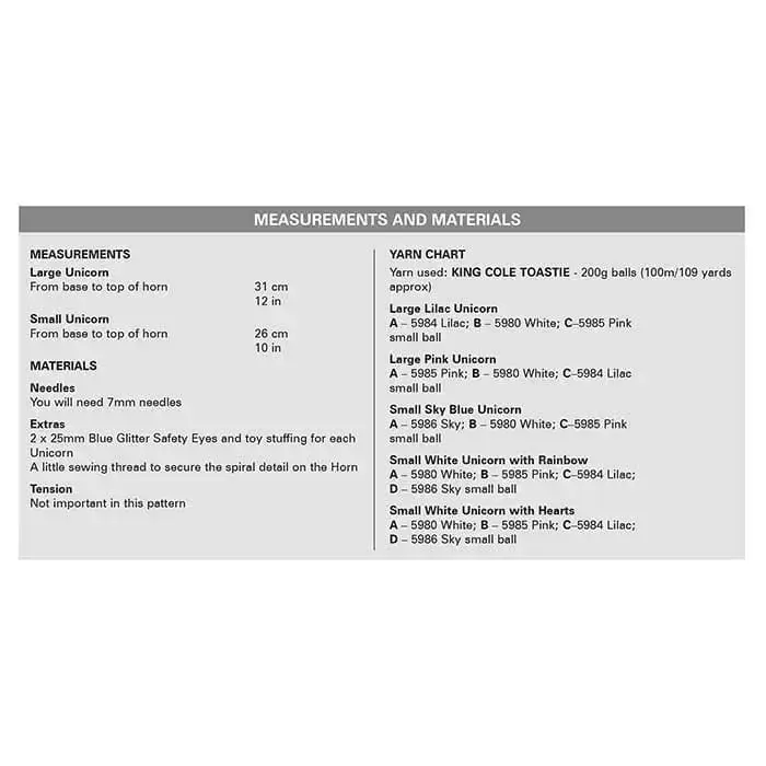 King Cole Toastie Unicorns 9193 Knitting Pattern